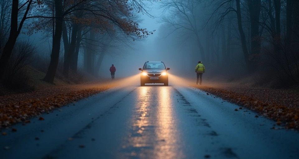 Zmienna pogoda jesienią znacząco wpływa na bezpieczeństwo uczestników ruchu. Mgła, deszcz i wcześnie zapadający zmrok ograniczają widoczność, a mokra i śliska nawierzchnia oraz liście na jezdni wydłużają drogę hamowania.