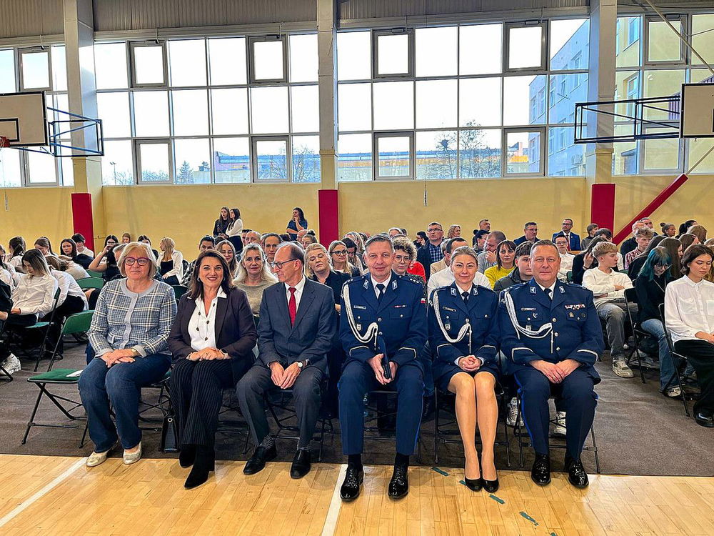 Komendę Miejską Policji w Toruniu reprezentowali m.in. I Zastępca Komendanta Miejskiego Policji kom. Tomasz Markowski, Naczelnik Wydziału Prewencji mł. insp. Maciej Szmelter oraz specjalista Wydziału Prewencji kom. Małgorzata Olewińska. Przedstawiciele policji złożyli dyrekcji, nauczycielom i uczniom gratulacje oraz słowa uznania za zaangażowanie w rozwój edukacji mundurowej i kształtowanie postaw obywatelskich.