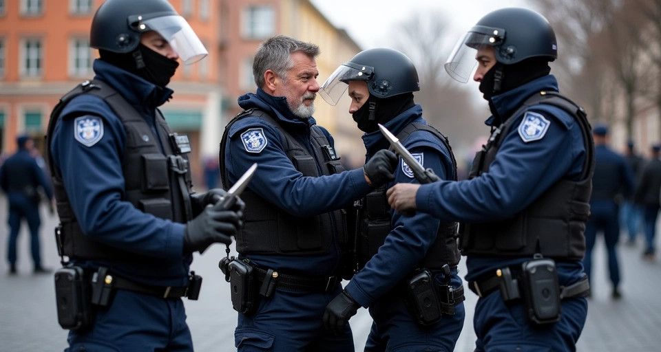 Po odłożeniu maczet, w trakcie zakładania kajdanek, mężczyzna zaatakował jednego z policjantów ukrytym przy nadgarstku nożem, próbując ugodzić go w brzuch. Agresor został szybko i skutecznie obezwładniony. Zaatakowany funkcjonariusz odniósł obrażenia niezagrażające jego życiu.