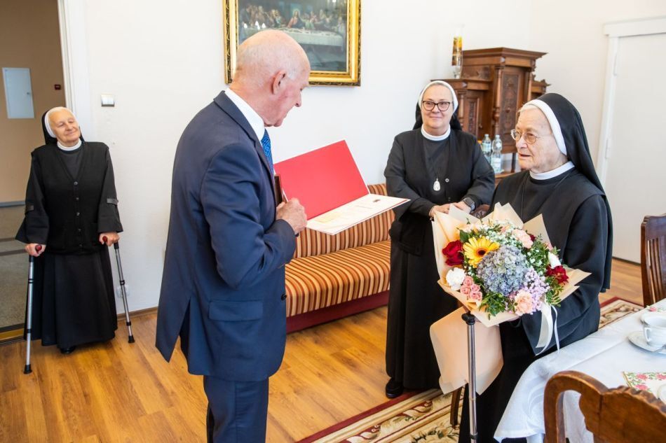 To był dzień pełen wzruszeń, wspomnień i wdzięczności. Siostra Rafaela (Stefania Pędzisz) ze Zgromadzenia Sióstr św. Elżbiety w Grudziądzu świętowała setne urodziny. Z tej okazji jubilatkę odwiedził radny województwa Robert Malinowski, który wręczył jej marszałkowski medal Unitas Durat Palatinatus Cuiaviano-Pomeraniensis.
