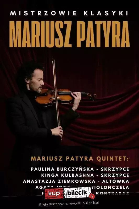 Zapraszamy na wieczór z muzyką klasyczną, w mistrzowskim wykonaniem. Gwiazdą wieczoru będzie jeden z najwybitniejszych polskich wirtuozów skrzypiec - Mariusz Patyra, o którym Zbigniew Wodecki mówił: "… o Mariuszu Patyrze, który jest uosobieniem tego, o czym marzyli moi rodzice, żebym ja, Zbysiu, był najlepszym skrzypkiem na świecie. To jest jedyny Polak, który wygrał konkurs Paganiniego. Jest takim skrzypcowym Zimermanem…", a po koncercie "Czterdziestka Zbigniewa Wodeckiego", na którym gościnnie wystąpił Mariusz Patyra, Jubilat powiedział: "To był dla mnie zaszczyt".