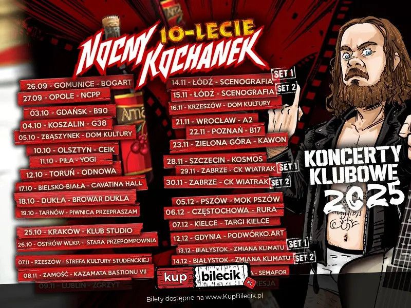 Nocny Kochanek rusza z drugą odsłoną jubileuszowej, klubowej trasy koncertowej z okazji 10-lecia istnienia zespołu! Po sukcesie koncertów halowych zespół wraca do klubów, by świętować w bardziej intymnej atmosferze, jeszcze bliżej Hewi Metal Fanów!